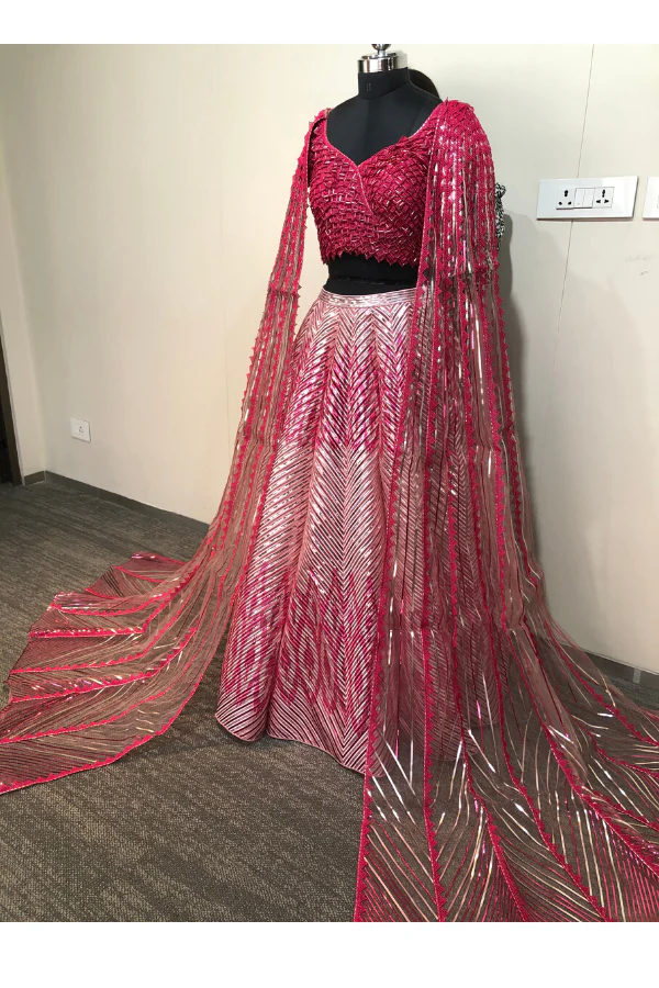 Colour : Hot pink Blouse and shades of pink Lehenga