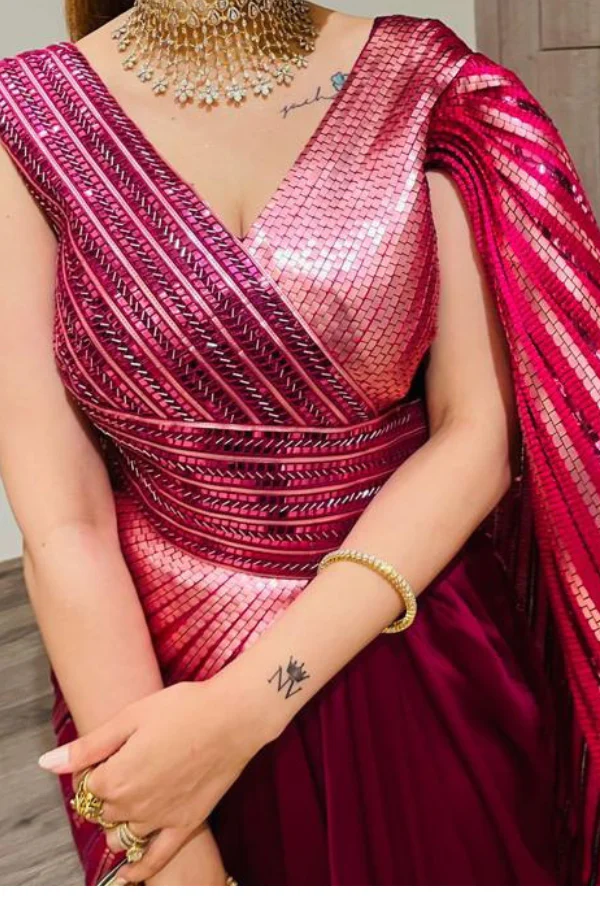-70%METALLIC PINK WINGED SAREE GOWN—